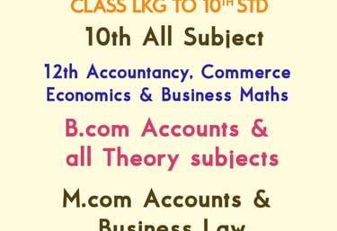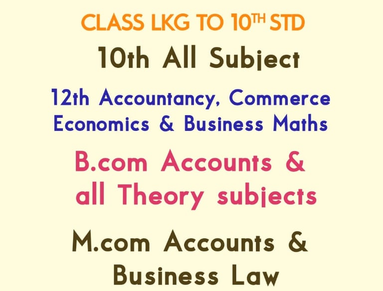 Certified school teachers offering top-level education from LKG to degree. Specializing in subjects like maths, science, commerce, and computer science. Join us for summer camps, coaching, and tuition classes.